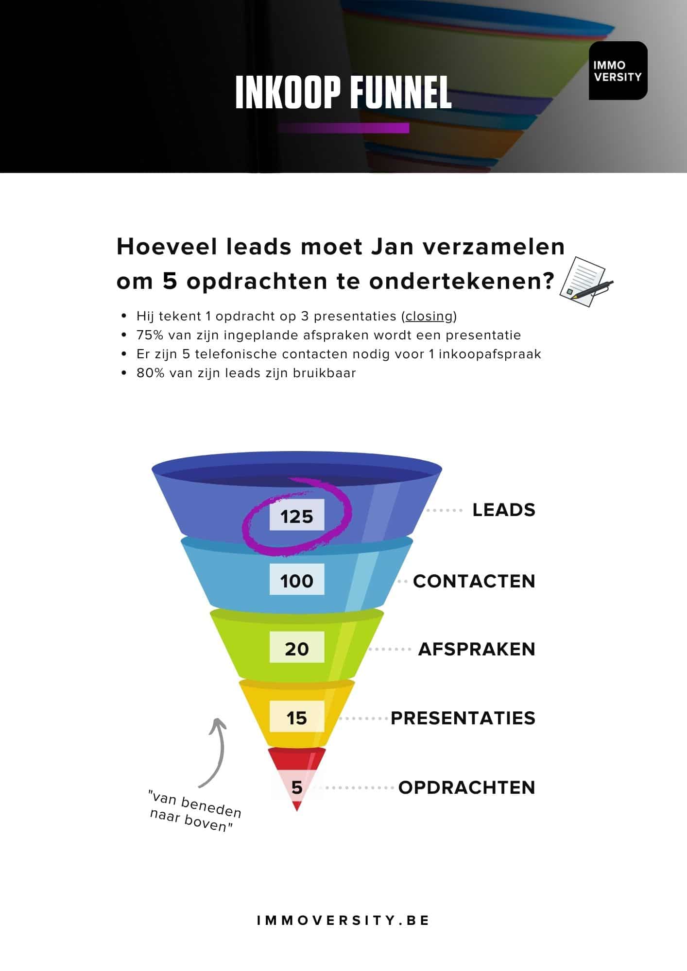 De inkoopfunnel helpt je in het bepalen hoeveel leads je nodig hebt om jouw maanddoel te realiseren.